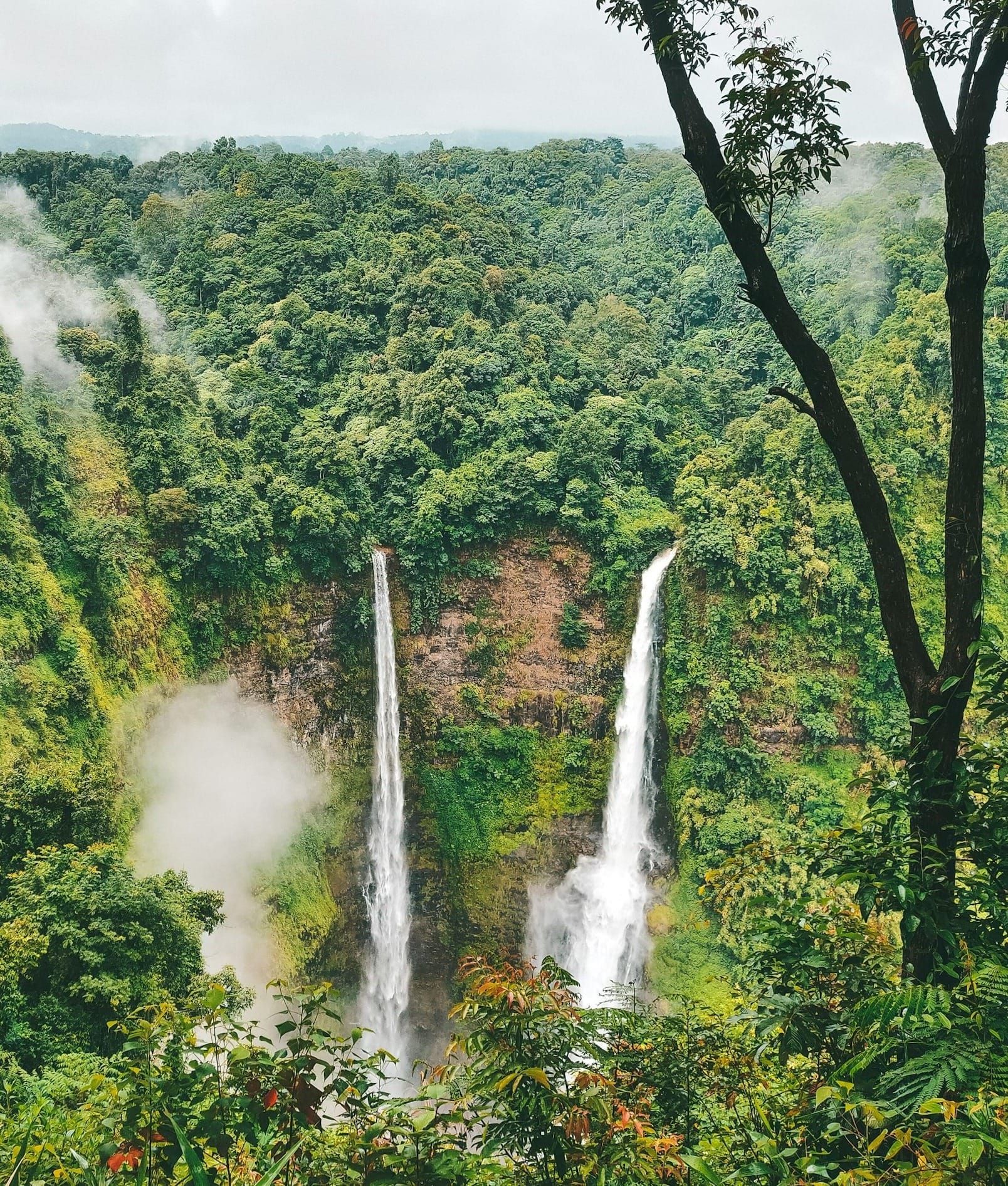 - Tad Fane : deux chutes jumelles plongeant dans une gorge profonde, entourées d'une forêt tropicale dense.