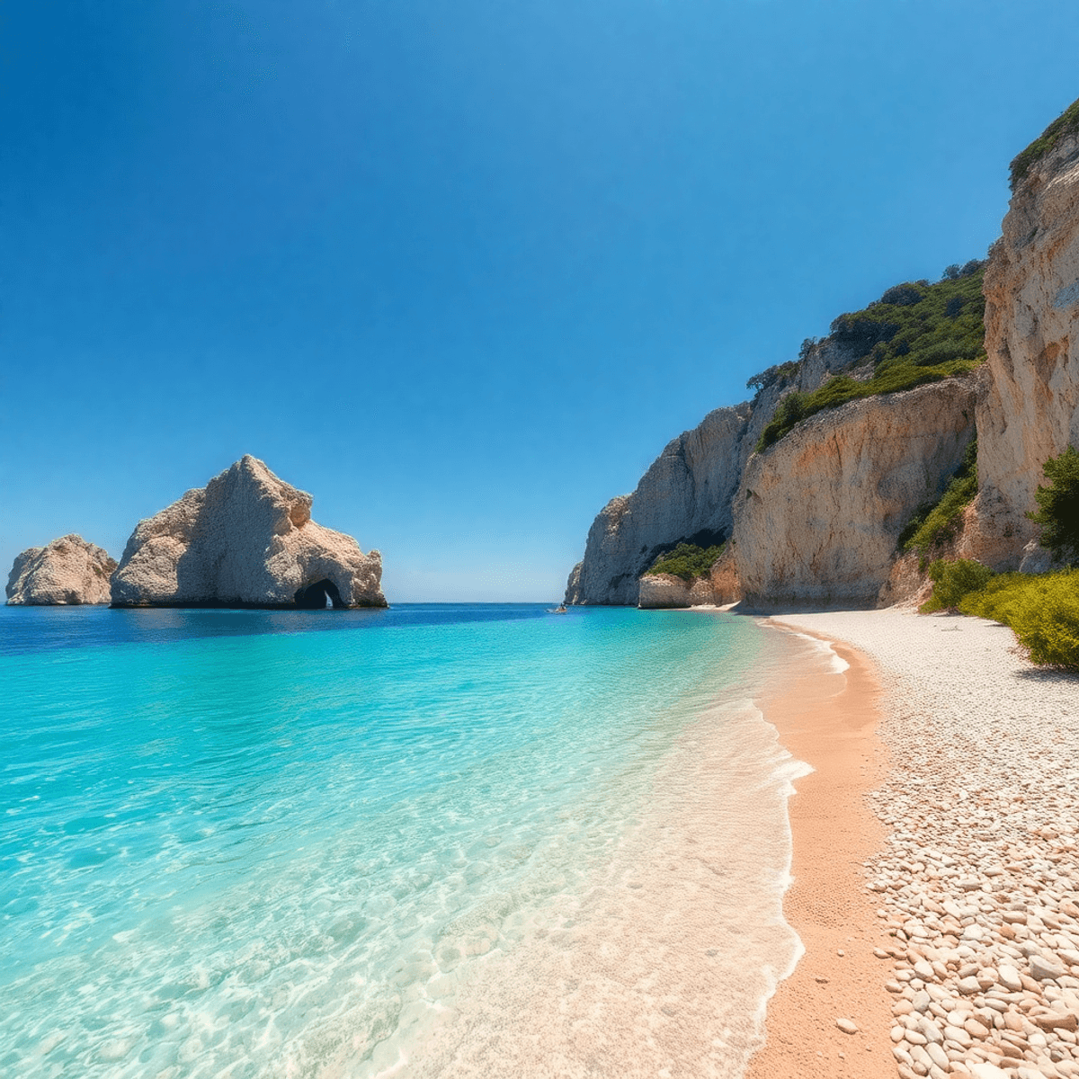 La plage de Gjipe mérite une attention particulière : nichée au fond du canyon de Gjipe, cette étendue de sable blanc est accessible après 40 minutes de marche sur un sentier escarpé ou par bateau. À marée basse, vous explorerez les piscines naturelles, cascades et grottes qui font le charme unique de ce site.